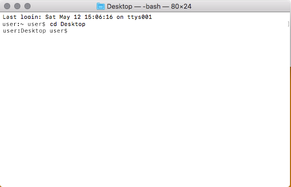 5. Type “cd Desktop” and hit enter to go to your desktop. Mind the capital ‘D’!